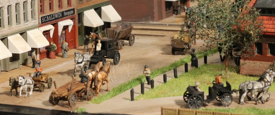 No easier to find: 1890s horse-drawn vehicles in N scale, especially cabs. Langley Models in the UK offers a variety of cast white metal carts, trolleys and more. For the beer carts and the Landauer cabs, Preiser models were the best offer.