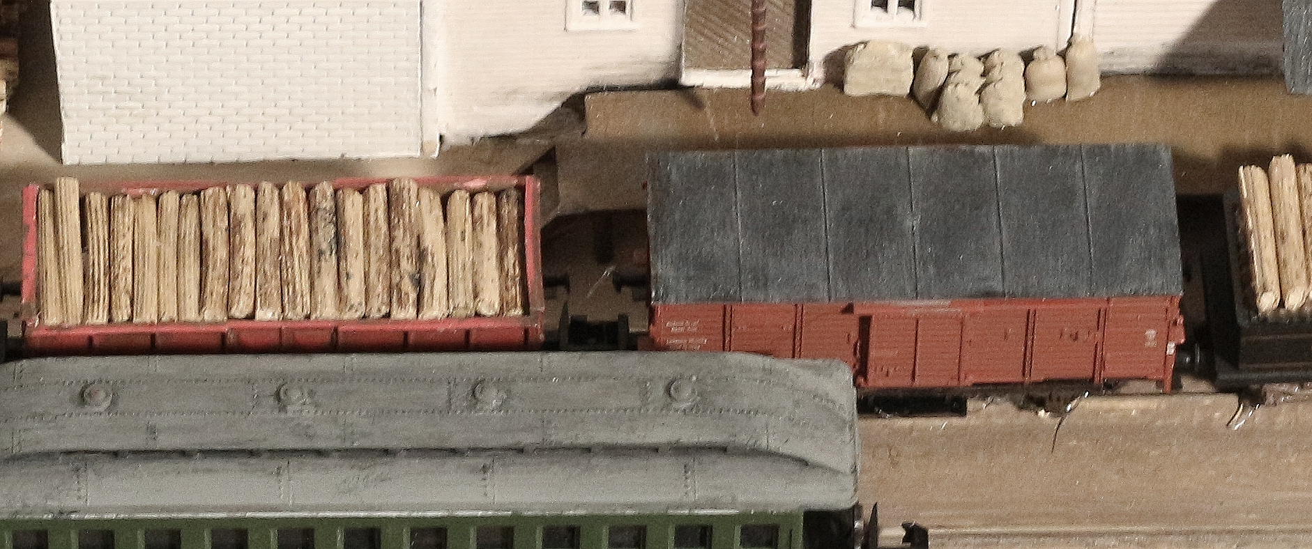 A used set of combine (luggage and passenger) and passenger cars should do, e. g. from Bachmann Europe. | All the fancy colors depend on the railroad company that used the cars. I was ensured that MCRR painted them in classical Pullman green. So did I.