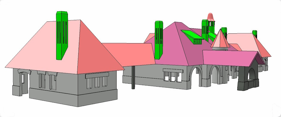 With the help of photographs, historical and digital maps, you can rebuild the structure by Computer Aided Design (CAD). | Choose a program that suits you, e. g. FreeCAD. | It is important to think about the best partitioning of the data. Every color stands for a single part.