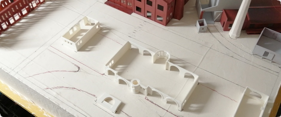 Using other model kits, rails, a pencil and first printed parts, the final layout is set, and proportions are being checked. The prints are made of Ultimaker Polylactic Acid (PLA), a robust yet well printable material.
