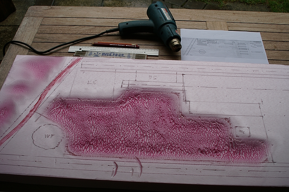 Styrodur ist das Material der Wahl - leicht und stabil, außerdem einfach zu bearbeiten. Mit Messer und Heißluftfön.